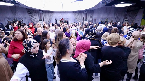 Hınca hınç dolu olan salonda kadınlar gece boyunca şarkılarla, halaylarla, horonlarla eğlendiler.