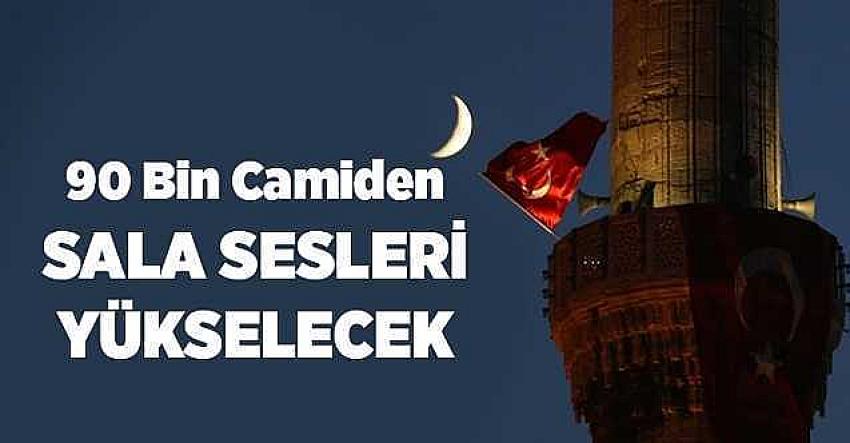 15 Temmuz Pazartesi gününü 16 Temmuz Salı gününe bağlayan gece saat 00.13'te 90 bin caminin tümünde eş zamanlı olarak selalar okunacak.