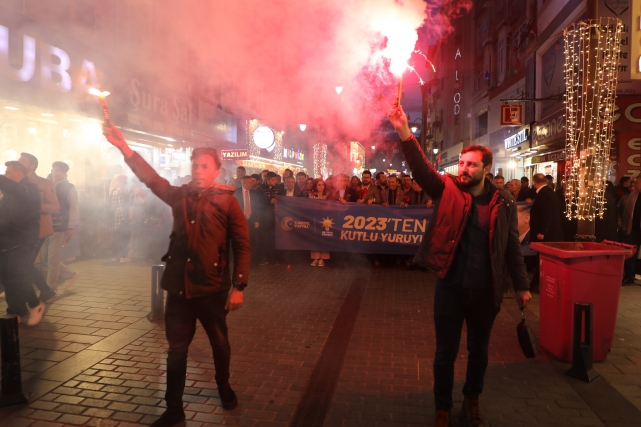 Vatandaşlar AK Parti kortejine yoğun ilgi gösterdi. Yaşlı genç her kesimden insan yürüyüşe katılarak destek verdi.