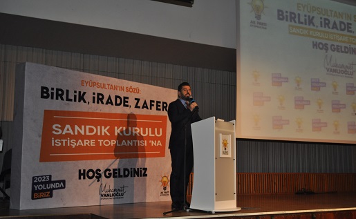 AK Parti’de sandık görevlileri istişare toplantısı yapıldı AK Parti eyüpsultan İlçe Başkanlığınca düzenlenen sandık görevlileri ile istişare toplantısı Eyüpsultan Belediyesi Kültür ve Sanat Merkezinde düzenlendi.