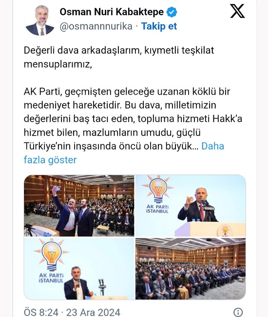 Osman Nuri Kabaktepe, sosyal medya hesabından yaptığı paylaşımda şu ifadeleri kullandı: