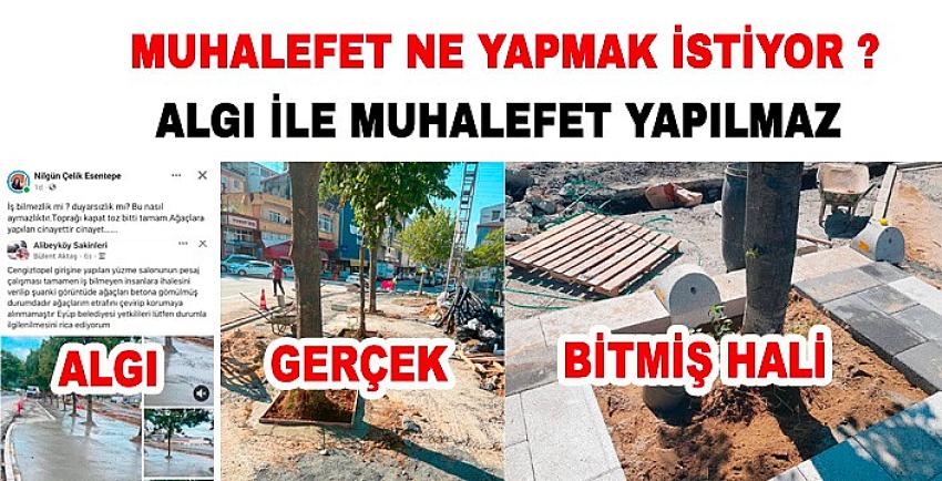Kendilerini muhalefet yaptığını düşünen meclis üyeleri de yerin fotoğrafını çekip sosyal medyada paylaşmaları “Eyüpsultan Belediyesi ağaçları betona gömmüş” algısı yaratarak çalışmaları baltalamak istediler.
