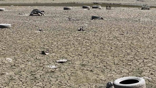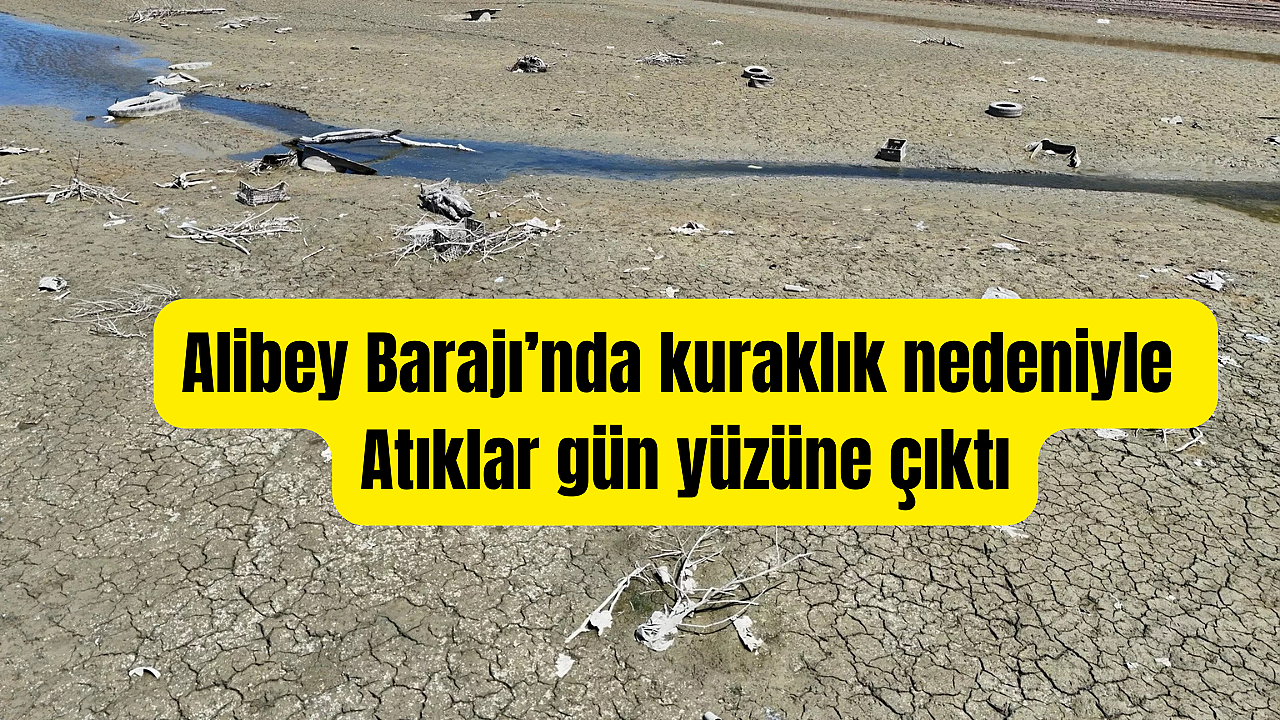 Alibey Barajı’nda sular çekildi, atıklar gün yüzüne çıktı