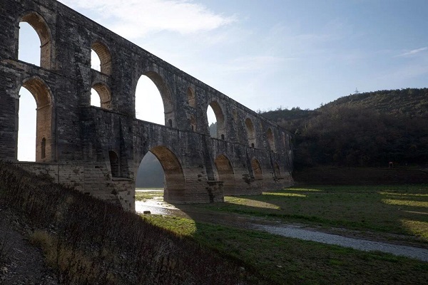 Alibeyköy Barajı'nda su seviyesindeki düşüş nedeniyle, Mimar Sinan'ın eserleri arasında yer alan ve dünya su mimarisinin başyapıtlarından biri kabul edilen Mağlova Su Kemeri'nin tüm ayakları ortaya çıktı.
