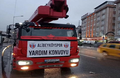 Depremin yaşandığı ilk günden itibaren yardım organizasyonlarına başlayan Alibeköyspor, depremin birinci günü iş makineleri ve yardım tırı yolladı. Kulüp yönetiminde görevli ve gönüllü kişiler Deprem bölgesine ulaşarak gerekli ihtiyaçları tespit etti. Felaketin ikinci gününde Alibeyköyspor’un katkılarıyla 5 iş makinesi ve 2 vinç bölgeye intikal etti.