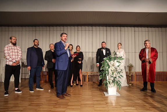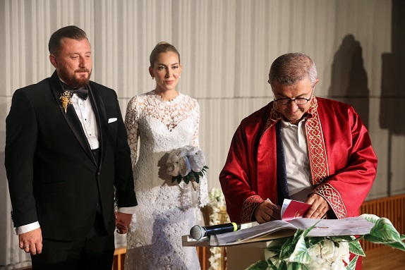Arada Pakyıldız, Ayşe Haciu çiftinin nikahını Belediye Başkanı Deniz Köken kıyarken nikah şahitliğini Eyüpsultan Belediyesi eski Başkanı Ahmet Genç yaptı.