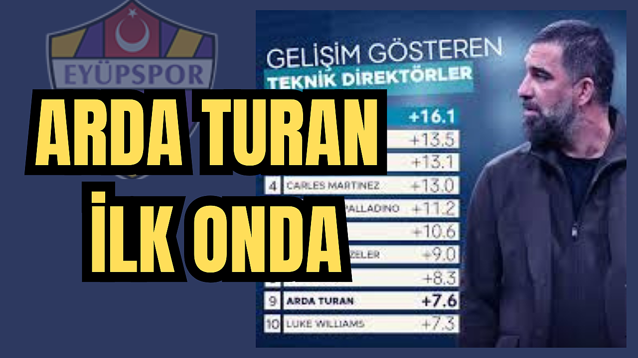 Eyüpspor’u 1. Lig’e çıkaran ve tarihinde ilk kez mücadele ettiği Süper Lig’de ilk 16 hafta sonunda 5. sıraya çıkaran Arda Turan’ın bu başarısı uluslararası alanda da ses getirdi. 2024 yılında dünya çapında en fazla gelişim gösteren 10 teknik direktörü seçen ‘transferroom.com’, listeye Turan’ı da aldı. Tek Türk olarak Arda Turan’ın bulunduğu listede, 2’şer İspanyol, İtalyan ve 1’er Fransız, İngiliz, Danimarkalı, Belçikalı ve ABD’li çalıştırıcı yer aldı.