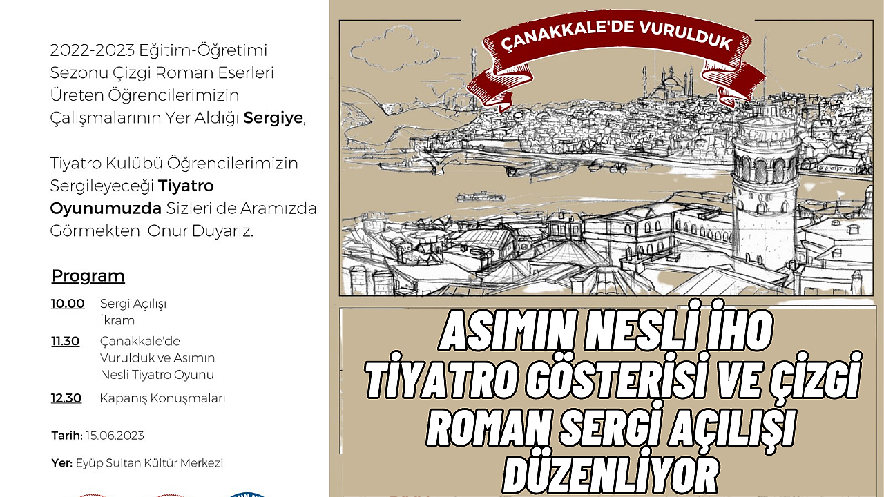 Okul çizgi roman atölyelerinde öğrenciler tarafından hazırlanan çizgi romanlar sergileneceği ve ardından tiyatro oyunun sahne alacağı gösteri Eyüpsultan Kültür Sanat Merkezi’nde yapılacak.