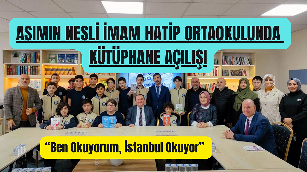 Asımın Nesli İmam Hatip Ortaokulunda Kütüphane açılışı Eyüpsultan’ın değerli eğitim kurumlarının liste başında yer alan okullarından Asımın Nesli İmam Hatip Ortaokulu ‘Ben Okuyorum, İstanbul Okuyor’ projesi kapsamında kütüphane açılışı gerçekleştirdi.