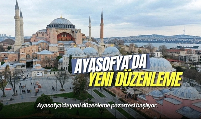 Kültür ve Turizm Bakanlığı'ndan yapılan açıklamaya göre, Kültür ve Turizm Bakanı Mehmet Ersoy'un Ayasofya'da başlattığı restorasyon ve koruma çalışmaları kapsamında ziyaretçilere yönelik camide yeni düzenlemeye geçilecek.