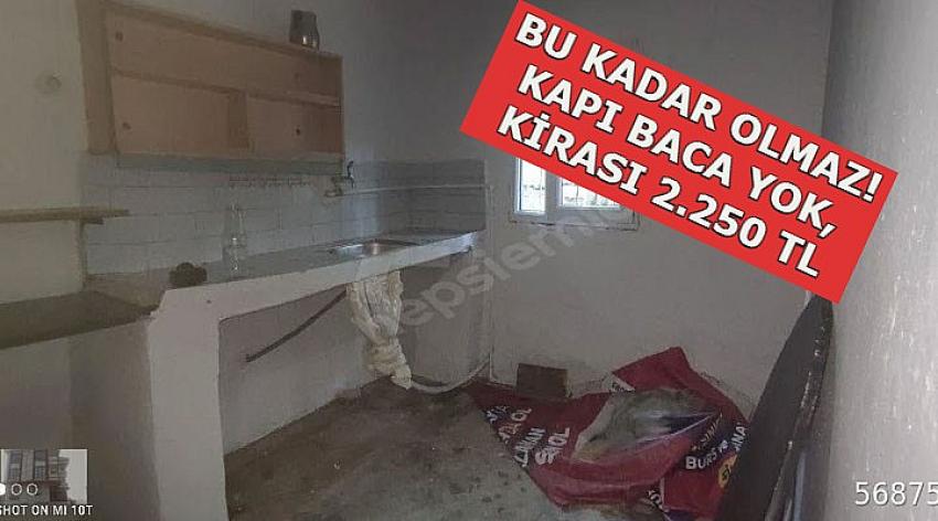 Mal sahibinin ilana verdiği fotoğraflarda evin fayans, mutfak, parke gibi unsurlarının olmadığı, doğlagaz tesisatının dahi yapılmadığı ev için iki bin 250 lira kira bedeli isteniyor.