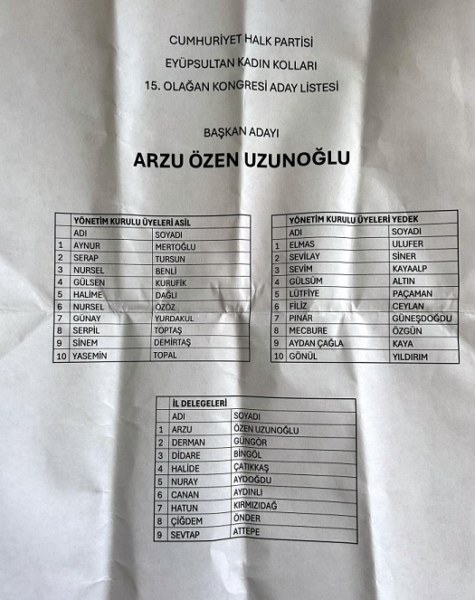 Cumhuriyet Halk Partisi Eyüpsultan 15. Olağan İlçe Kadın Kolları Kongresi pazar günü Seronomi Düğün Salonunda gerçekleştirildi. Kadın Kolları Kongresine partililer büyük ilgi gösterdi. Üç adayla gerçekleştirilen seçimde CHP’nin yeni Eyüpsultan Kadın Kolları Başkanı belli oldu. Kazanan Arzu Özen Uzunoğlu oldu.