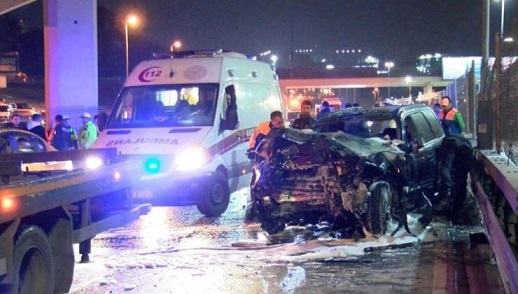 Kaza, E-5 karayolu Merter istikametinde meydana geldi. İddiaya göre, karayolunda makas atarak ilerleyen lüks cip sürücüsü Muhammet E. A. (19) direksiyon hakimiyetini kaybedince demir bariyerlere çarptı. Çarpmanın etkisiyle lüks cip yola savrularak alev aldı, sürücü Muhammet E. A. cipten yola fırladı, Erdem Ö., Eren G. ve Yusuf D. ise araçta sıkıştı.