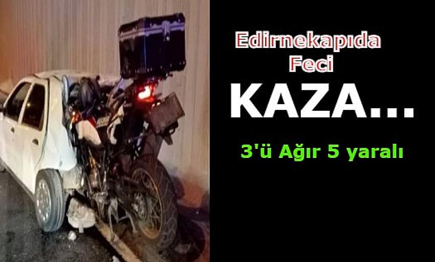 Edirnekapı’da Motosiklet otomobile çarparak ok gibi saplandı: 3'ü ağır 5 yaralı