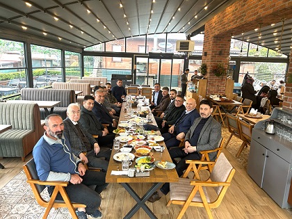 Göktürk’te yapılan kahvaltılı iş toplantısına Emti İnşaat Yönetim Kurulu Başkanı Ali Akçiçek, KRG İnşaat Yönetim Kurulu Başkanı Ahmet Keske, Çetin İnşaat Yönetim Kurulu Başkanı Yaşar Çetin, İvme Yapı Yönetim Kurulu Başkanı Yavuz Polatot, Abdiağaoğlu İnşaat Yönetim Kurulu Başkanı Fatih Karataş, Bayram ARC İnşaat Yönetim Kurulu Başkanı Erkan Bayram ve dernek yönetim kurulu üyeleri katıldı.