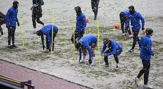 Trendyol Süper Lig’in 25. haftasında 21 Şubat Cuma günü Beşiktaş'ı ağırlayacak ikas Eyüpspor, karşılaşmanın hazırlıklarına devam etti. Eyüp stadında yapılan antrenman, teknik direktör Arda Turan yönetiminde yoğun kar yağışı altında yapıldı.
