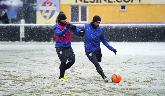 Eyüpspor, Süper Lig'in 25'inci haftasındaki Beşiktaş maçı hazırlıklarını yoğun kar yağışı altında sürdürdü.