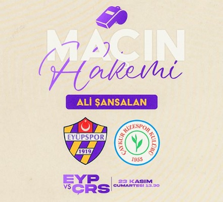 Eyüpspor, Trendyol Süper Lig'in 13. haftasında Çaykur Rizespor ile İstanbul’da karşılaşacak. Maçı Çanakkale bölgesinden hakem Ali Şansalan yönetecek.