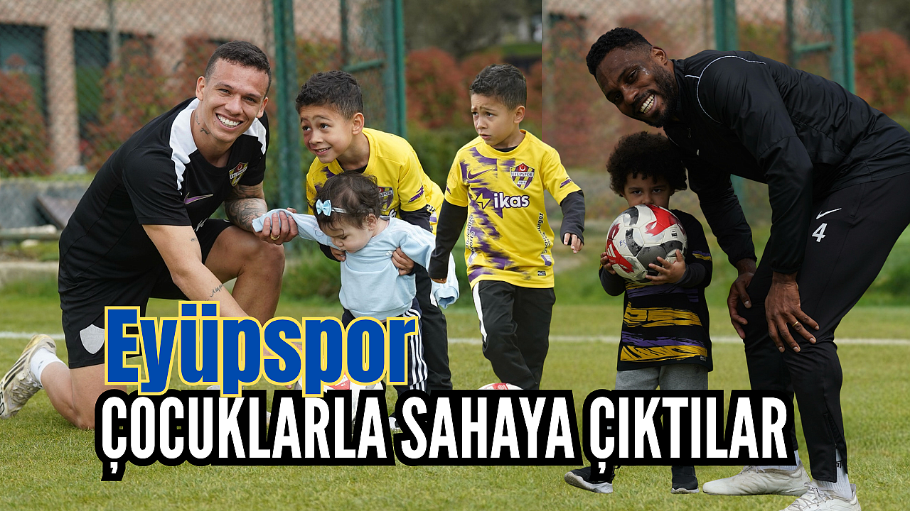 İSTANBUL / EYÜPSULTAN – Süper Lig yolculuğuna devam eden Eyüpspor, 23 Nisan Ulusal Egemenlik ve Çocuk Bayramı dolayısıyla tesislerinde anlamlı bir etkinliğe imza attı. Günün antrenmanını tamamlayan futbolcular, çalışma sonunda sahayı çocuklarına bıraktı.