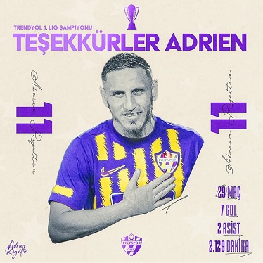 “Formamızı giydiği süre boyunca verdiği mücadele ve Eyüpsporumuz'un Süper Lig'e çıkmasındaki katkıları için Adrien Regattin'e teşekkür eder, kariyerinin devamında başarılar dileriz! “