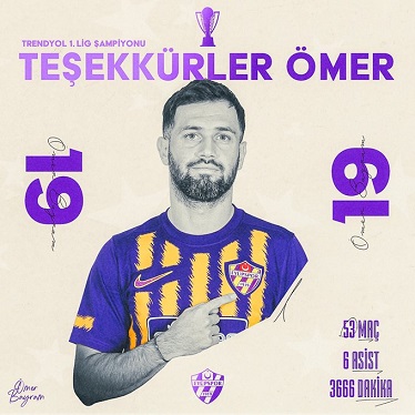 "Formamızı giydiği iki sezon boyunca verdiği mücadele ve Eyüpsporumuz'un Süper Lig'e çıkmasındaki katkıları için Ömer Bayram'a teşekkür eder, kariyerinin devamında başarılar dileriz!"