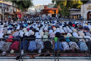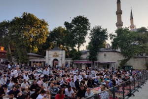 İstanbul'un farklı bölgelerinden gelen vatandaşlar, bayram namazını Eyüpsultan Camii'nde kıldı. Cami içerisinde yer kalmayınca bazı vatandaşlar avluda namazlarını kıldı.