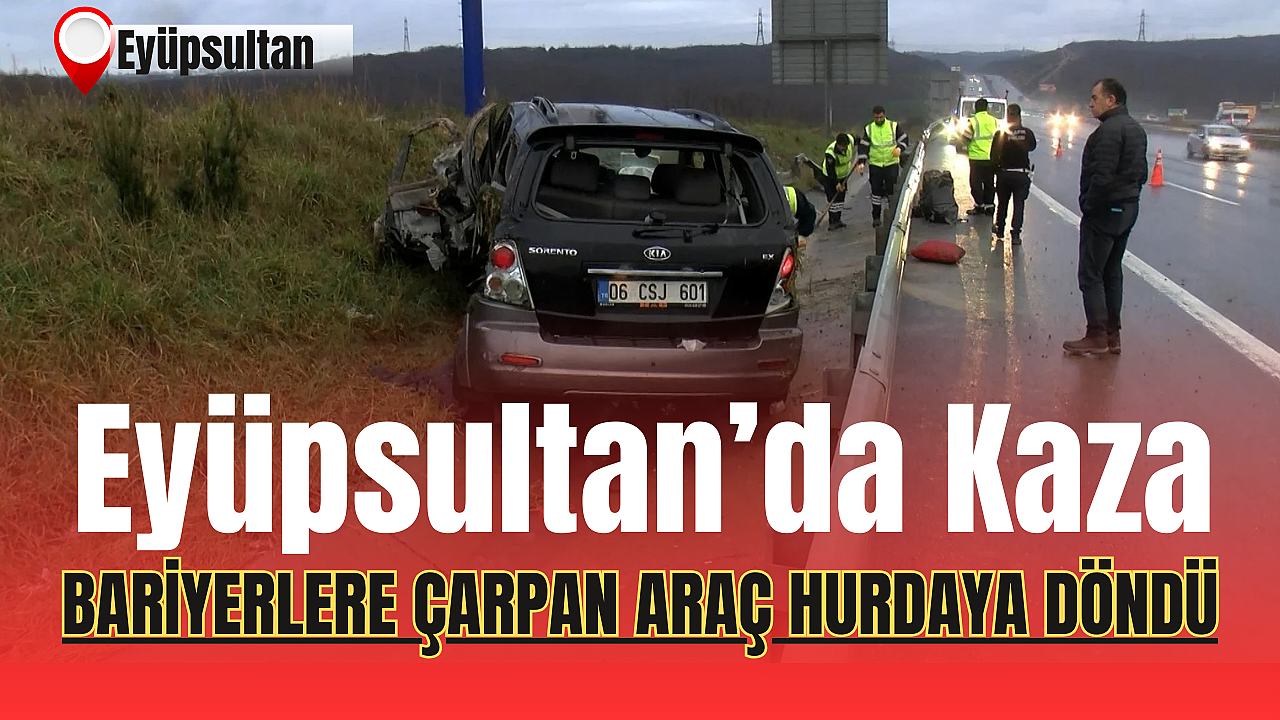 Eyüpsultan'da bariyerlere çarpan cip hurdaya döndü
