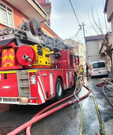 Yangın, sabah saatlerinde Sakarya Mahallesi Miraç Sokak’ta bulunan iki katlı gecekonduda meydana geldi.