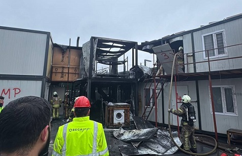 Eyüpsultan'da, Adliye binası için tahsis edilen binanın tadilatında çalışan işçilerin kaldığı konteynerde çıkan Yangın söndürüldü.
