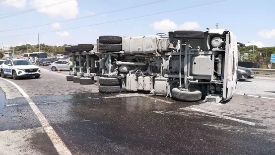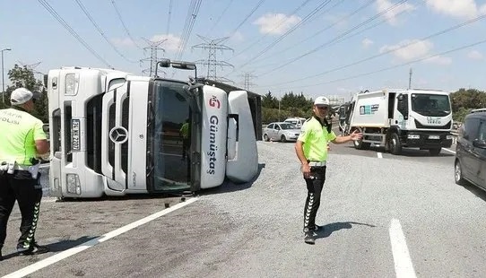 Eyüpsultan'da Kemerburgaz-Hasdal karayolunun Hasdal yönünde mıcır yüklü kamyon saat devrildi. İddiaya göre, mıcır yüklü hafriyat kamyonu başka bir aracın sıkıştırması sonucu devrildi.