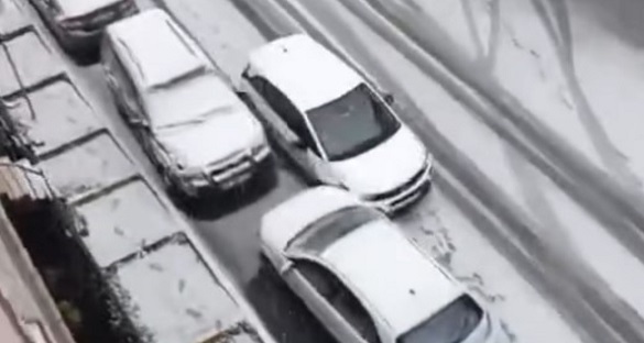 Eyüpsultan’da aralıklarla etkili olan kar yağışı beraberinde kazaları da getirdi. Yokuş aşağıya kayarak ilerleyen otomobil, park halindeki araçlara çarptı.