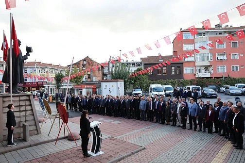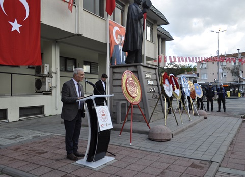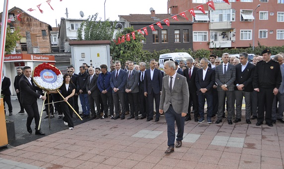 Eyüpsultan Kaymakamlık önünde düzenlenen törende Muhtarlar Derneği Başkanı Hüseyin Bilek, Atatürk Anıtı'na çelenk koydu.