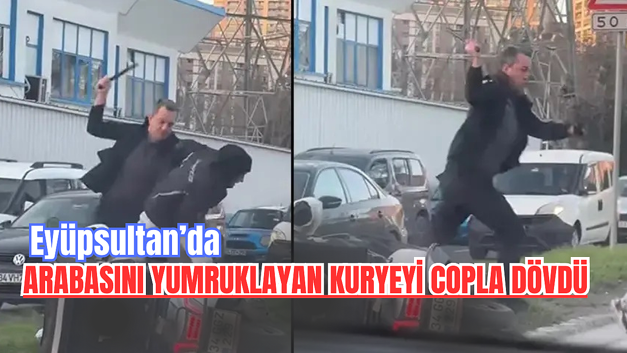 Eyüpsultan'da otomobil sürücüsü yol verme tartışmasında arabasını yumruklayan motosikletli kuryeyi copla darbetti.