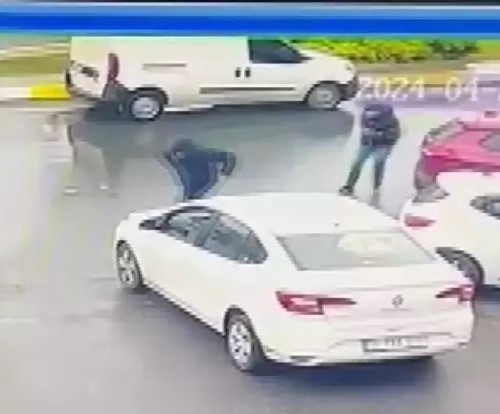 Otomobildekilerin motosikletli şüphelilerden kaçma ve silahla karşılık verme anları iş yerinin güvenlik kamerasına saniye saniye yansıdı. İhbar üzerine olay yerine gelen polis ekipleri saldırganların yakalanması için çalışma başlattı.