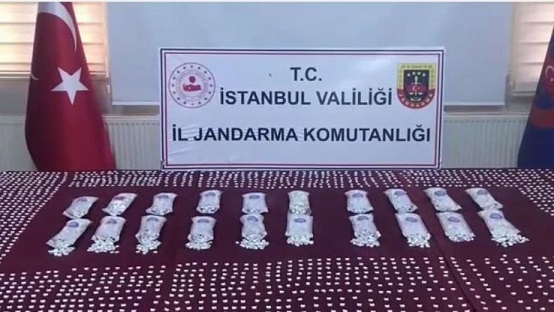 Şüphelilerin üst araması ve adreslerinde yapılan aramada 10 bin adet uyuşturucu hap, üzerinde 3 namlusu bulunan bir adet silah ve bu silaha ait 5 mermi ele geçirildi.