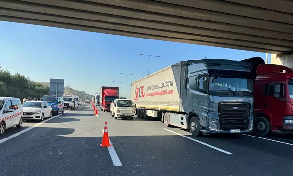 Kaza nedeniyle yolda uzun araç kuyruğu oluştu.