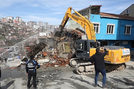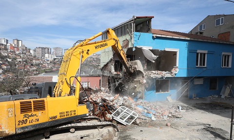 Esentepe Mahallesi'nde hasar gördüğü için Eyüpsultan Belediyesi ekipleri tarafından tahliye edilen 6 binanın yıkımına başlandı.