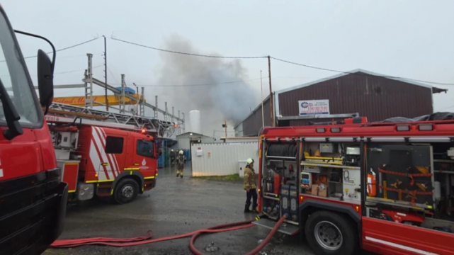 İSTANBUL / EYÜPSULTAN - Yangın, Pirinççi Mahallesi Köyü Yolu Sokak’ta bulunan bir kömür fabrikasında henüz bilinmeyen bir nedenle çıktı. Kısa sürede büyüyen alevler, bitişikte bulunan çöp kovası üretim fabrikasına ve çöp kamyonu tamir-bakım servisi olarak faaliyet gösteren iş yerine sıçradı.