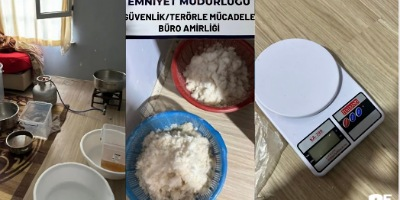 Evde yapılan aramalarda 42 kilo 720 gram uyuşturucu, 2 sahte pasaport, 2 litre aseton, hassas terazi, 3 cep telefonu, 6 bin 685 lira, 8 cam tüp, 3 mutfak tüpü, 3 ocak ile 2 kazan ele geçirilirken, Emniyetteki işlemlerin ardından adliyeye sevk edilen 2 şüpheli, çıkarıldıkları hakimlikçe tutuklandı.