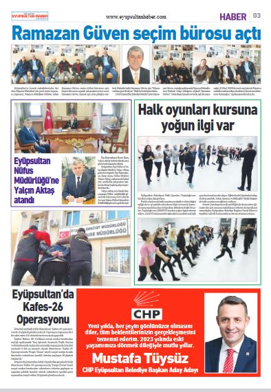 Eyüpsultan’lıların en sevdiği gazete “EYÜPSULTAN HABER GAZETESİ” nin yeni sayısı çıktı.