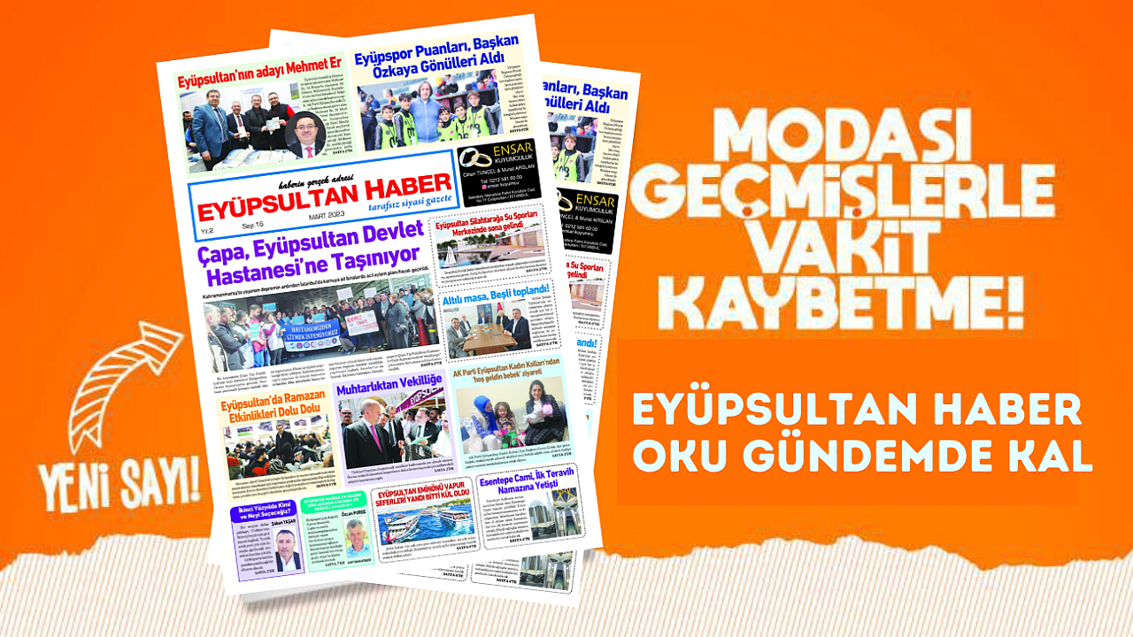 Her ay İstanbul ve Eyüpsultan gündemini belirleyen bağımsız yerel gazeteniz Eyüpsultan Haber Gazetesi yeni sayısıyla okuyucusuyla buluştu.