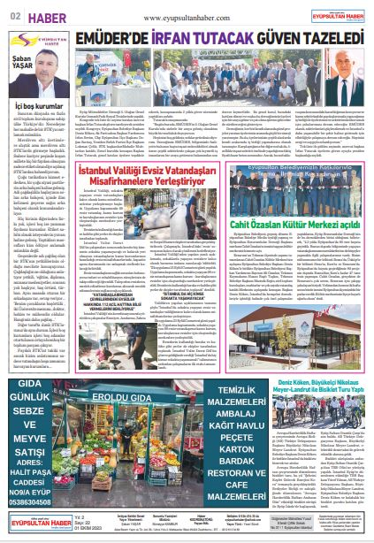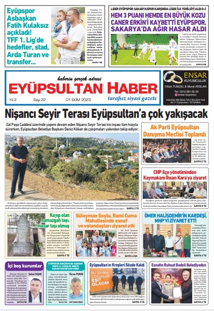 Eyüpsultan’ın gündemini belirleyen haberleri, Eyüpsultan’ın gazetesi Eyüpsultan Haber Gazetesi’nin 22. sayısı çıktı.