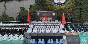 Yürütülen tahkikat işlemleri devam ederken el konulan binlerce çift ayakkabı, İstanbul Emniyet Müdürlüğü’nde sergilendi.