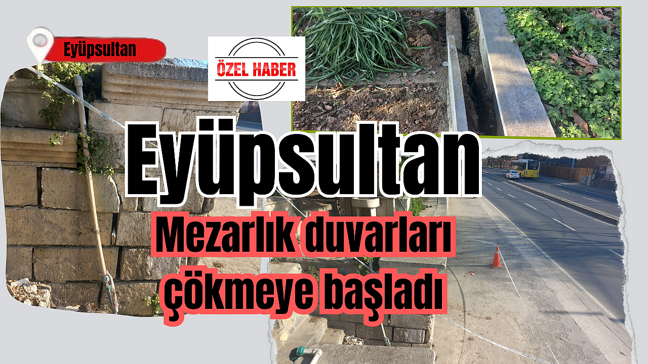 Mezarlık ziyaretinde bulunan vatandaşlar duvarların yıkılmak üzere olduğunu girmesiyle korku yaşıyor. Eyüpsultan sahil yolu üzerinde bulunan duvarların yıkılması an meselesi.