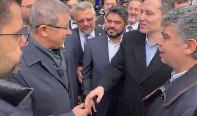 Bayram namazı için Eyüpsultan Camii'ne gelen Fatih Erbakan vatandaşlarla bayramlaşan Belediye Başkanı Deniz Köken'in ile kısa sohbet etti.