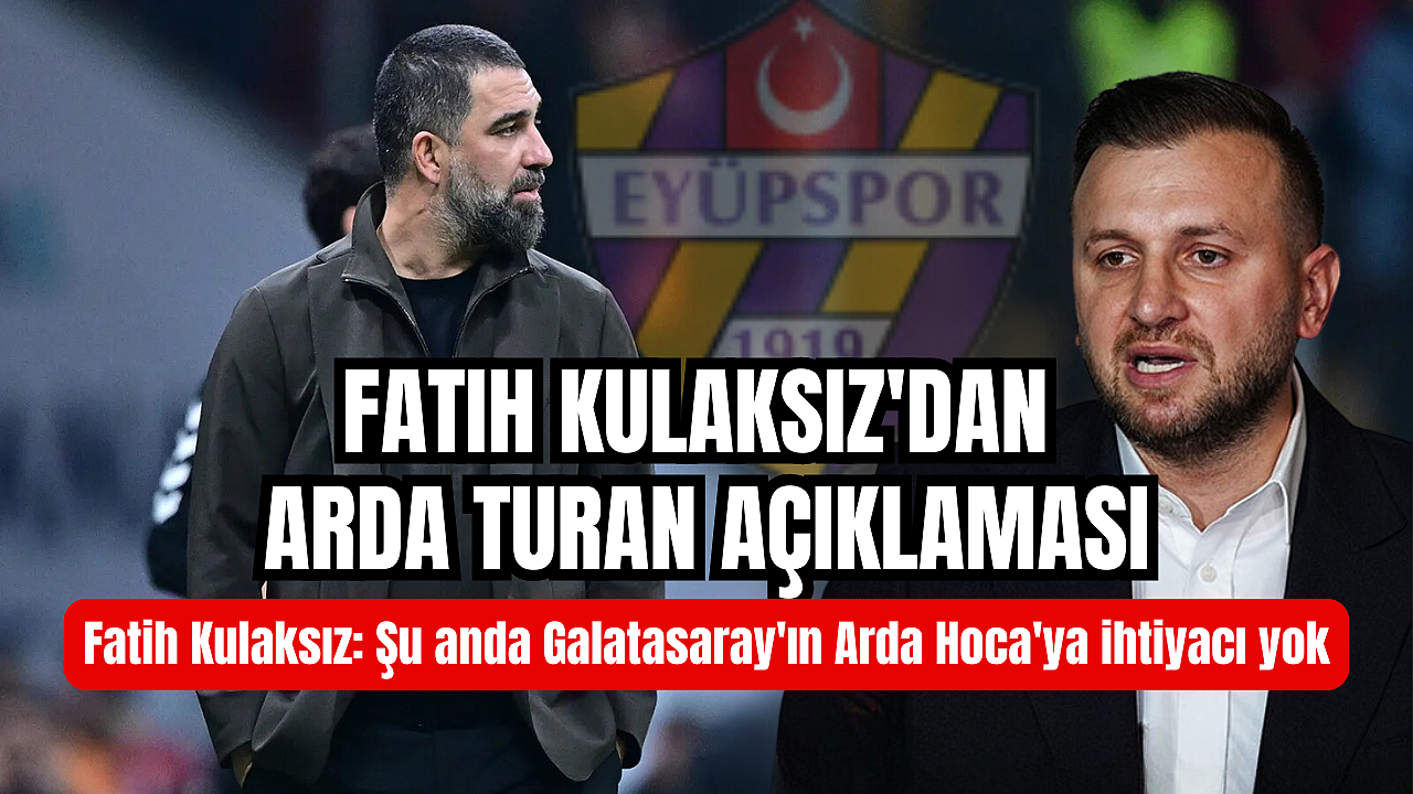 Arda Turan'ın şu anda Türkiye'de başka bir camiada çalışma durumu olmadığını belirten Fatih Kulaksız, "Türkiye'de, şu anda Galatasaray'ın Arda Hoca'ya ihtiyacı yok. Türkiye'de de Arda Hoca'nın Eyüpspor'dan başka çalışabileceği, keyifle çalışabileceği bir ortam yok bizden başka. Ama uzun vadede Avrupa'dan veya Milli Takım'dan teklif gelmesi halinde biz kendisine yardımcı oluruz. Arda Hoca'mızı en iyi yerde görmek istiyoruz" ifadelerini kullandı.