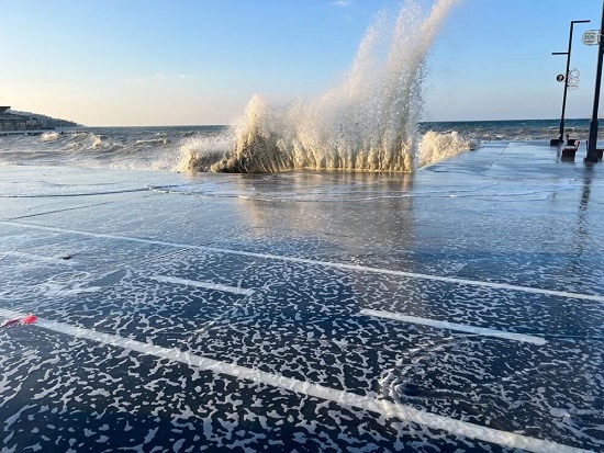 İstanbul’da yapılan uyarıların ardından lodos etkili oldu. Büyükçekmece sahilinde dev dalgalar kıyıya vurdu.