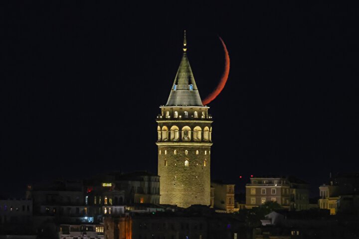 İstanbul'da muhteşem görüntü İstanbul'da hilal, Galata Kulesi ile birlikte güzel görüntü oluşturdu.