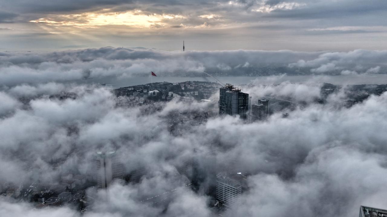 Gün doğumuyla beraber şehrin simge noktaları, bulutların üzerine çıkarak adeta gökyüzünde süzülen yapılar gibi göründü.