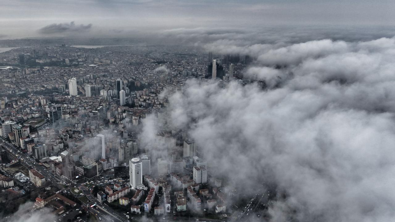 Drone ile havadan kaydedilen görüntülerde İstanbul, sis ve gün doğumunun oluşturduğu görsel şölenle izleyenleri kendine hayran bıraktı.